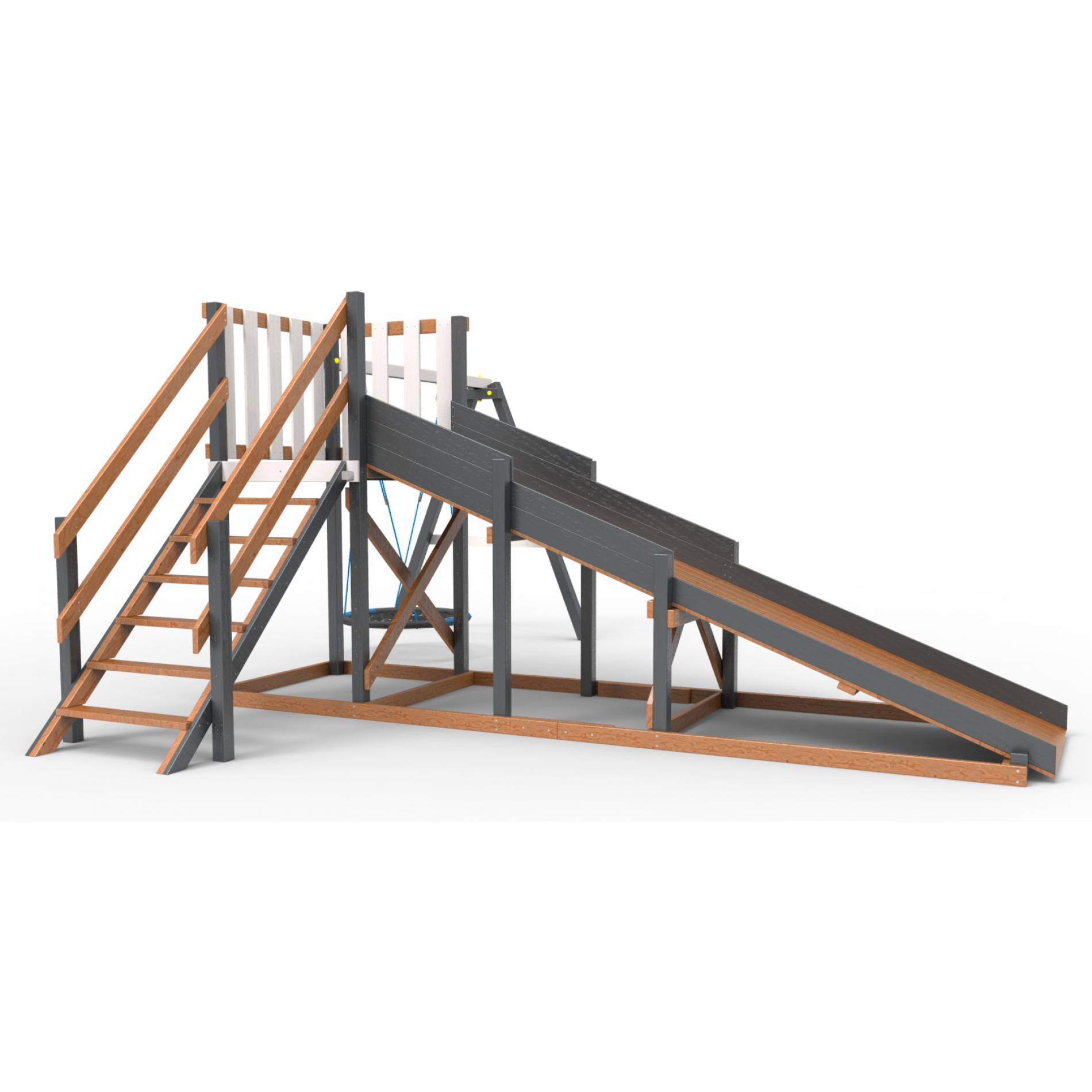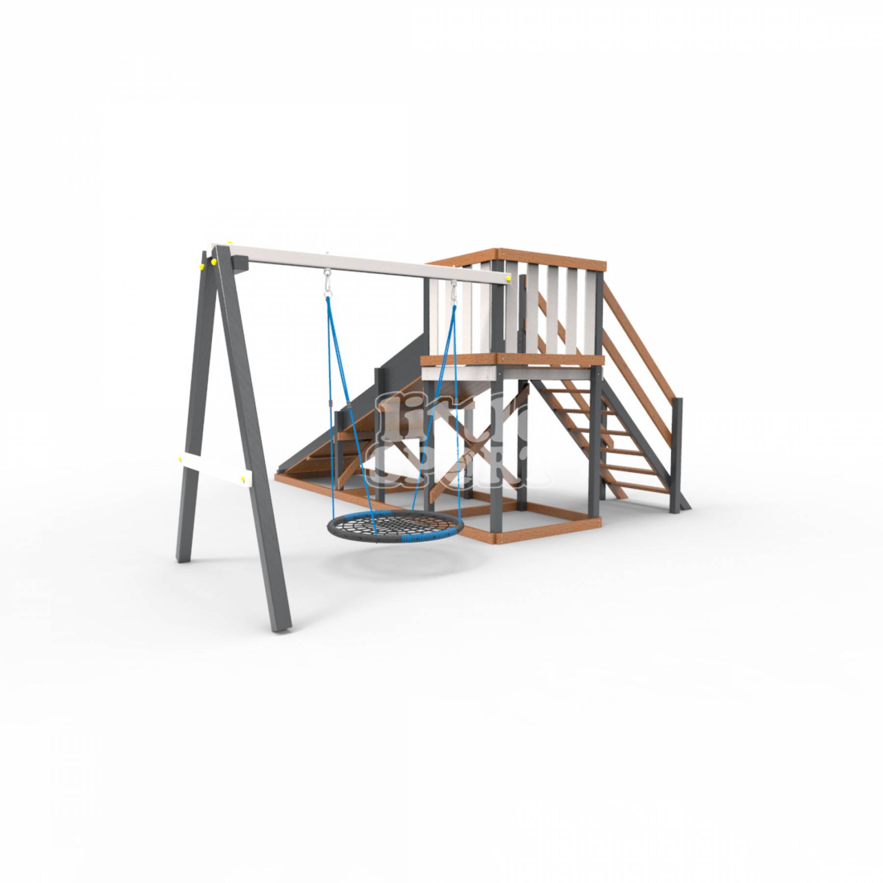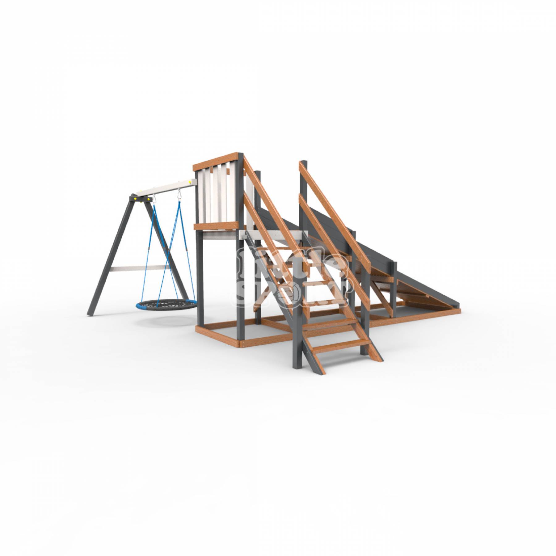 • Детская площадка - деревянная горка Пикник «Зима №2» Ультра с качелями «Гнездо»