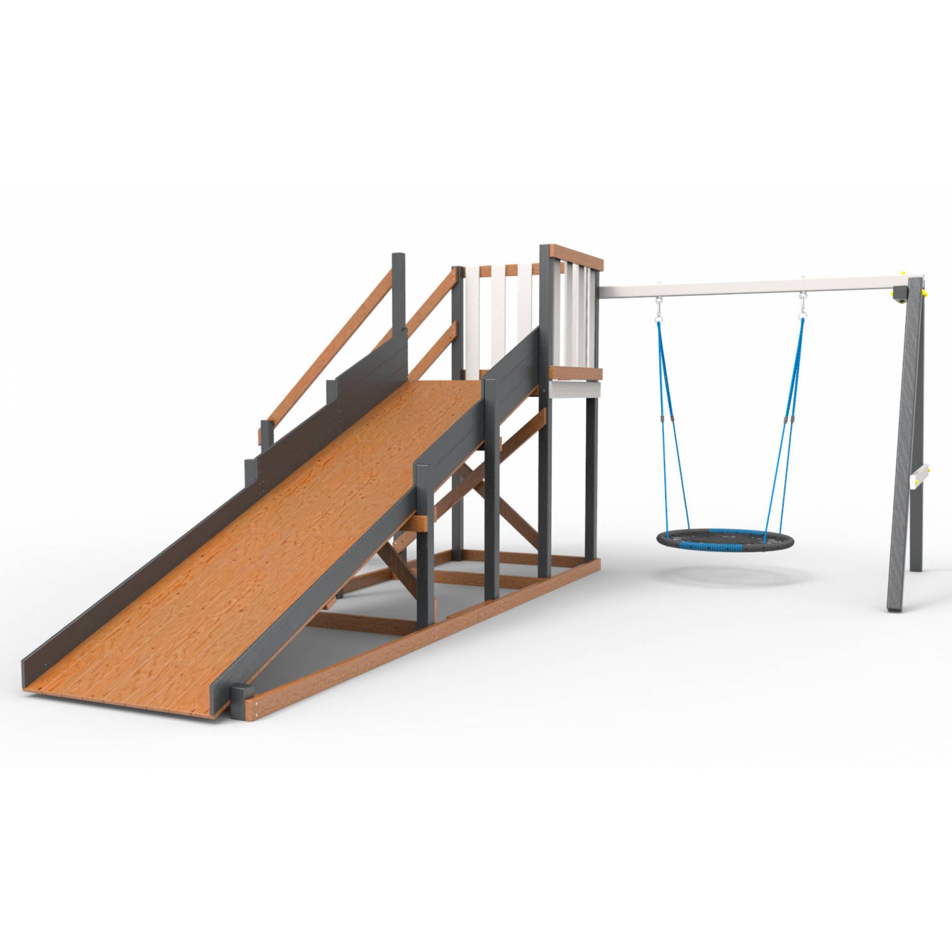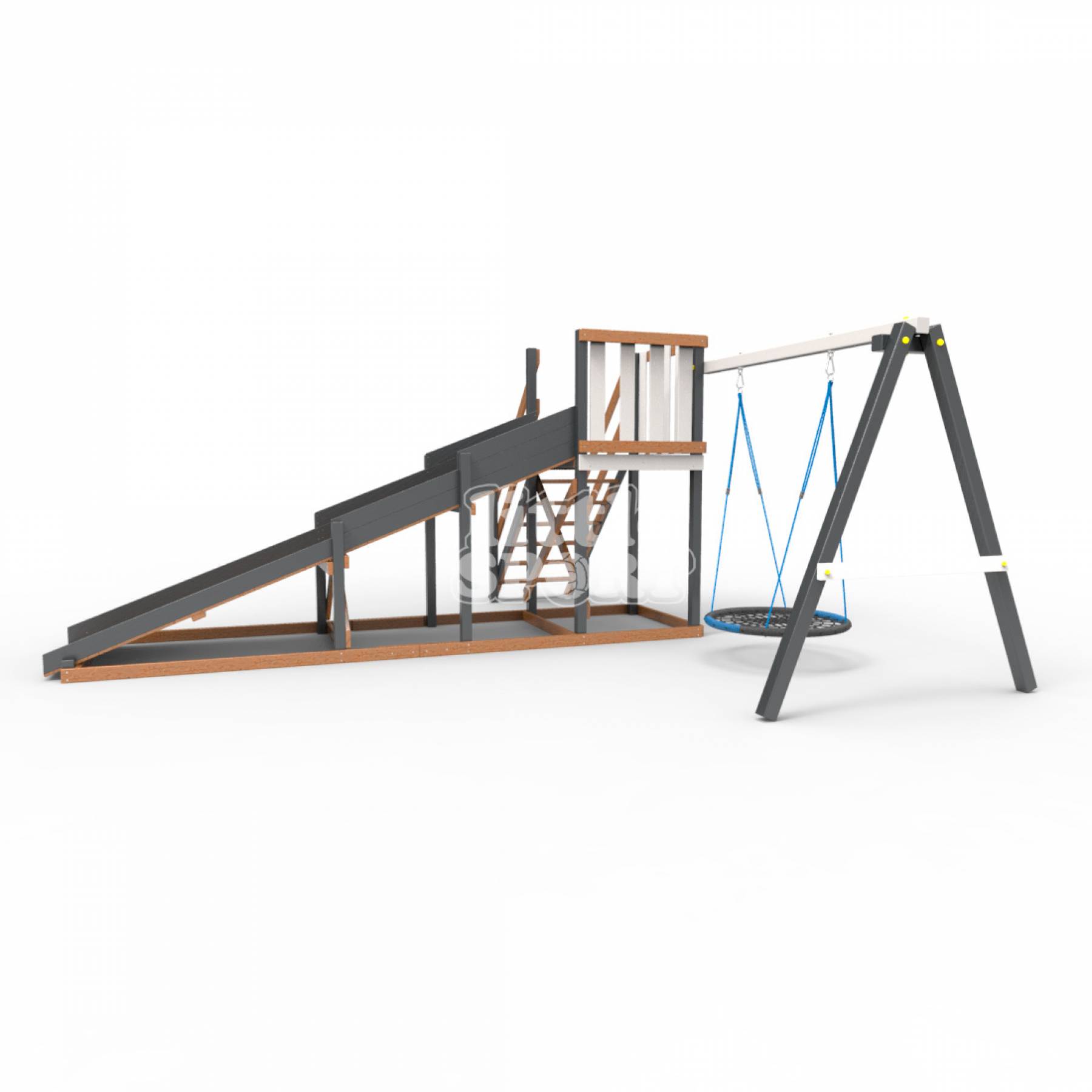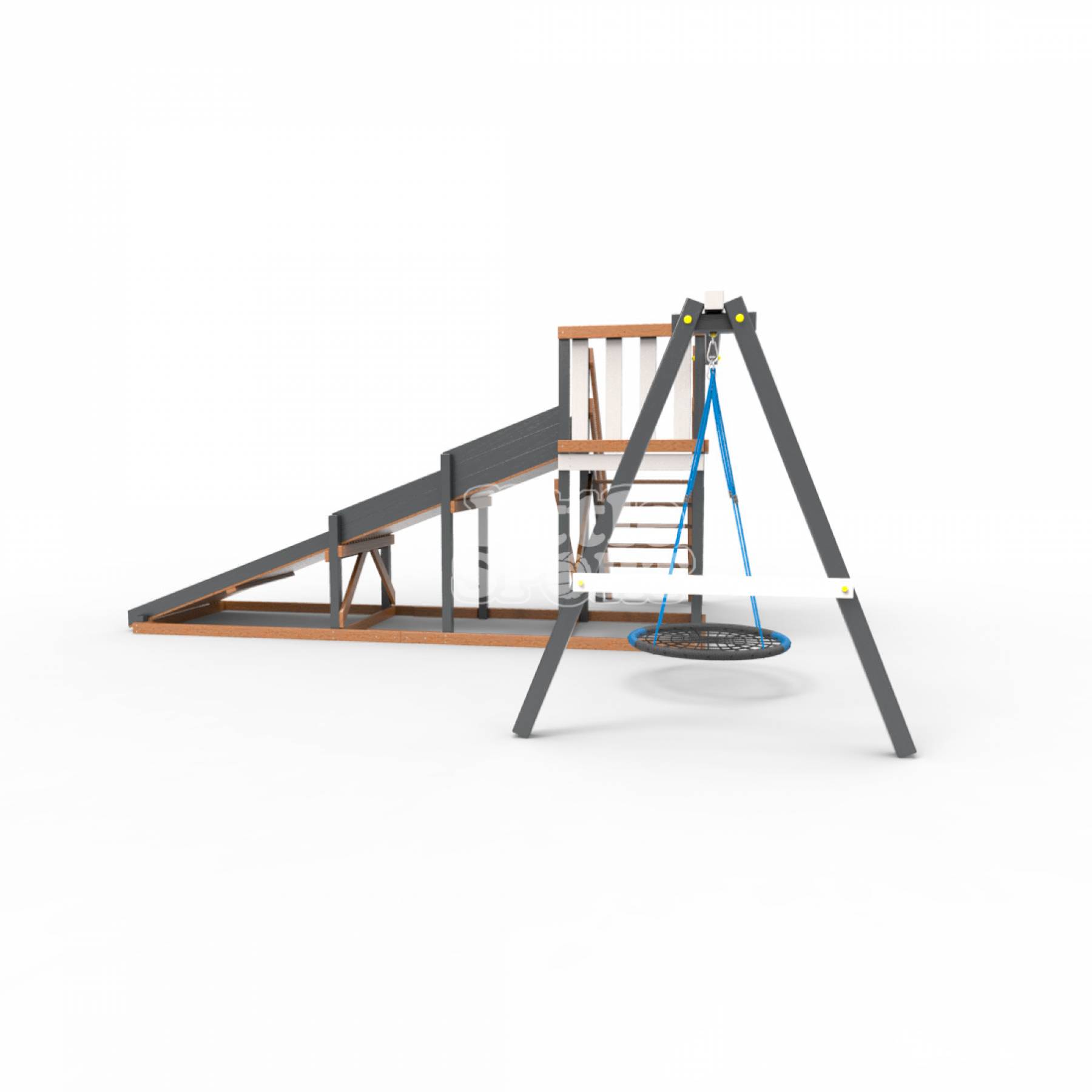 • Детская площадка - деревянная горка Пикник «Зима №2» Ультра с качелями «Гнездо»